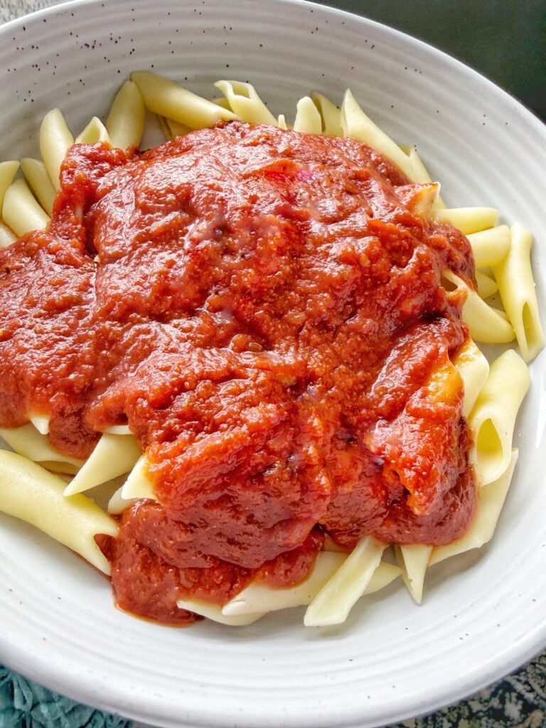 A Food Memory Of My Old Neighborhood This Chicago Pizzeria Style Sweet Oregano Tomato Sauce starts with olive oil, onion, garlic, and tomato paste. It is then simmered with crushed tomatoes, oregano, and a touch of brown sugar for that nostalgic neighborhood red-sauce flavor. It’s perfect tossed with spaghetti or baked into mostaccioli. This can also be spooned over meatballs, or used anywhere you want that classic pizzeria pasta sauce taste. I grew up on the Southwest Side of Chicago near Midway Airport. At the time, my neighborhood was very Polish and Italian. My cousin Kim and I used to…