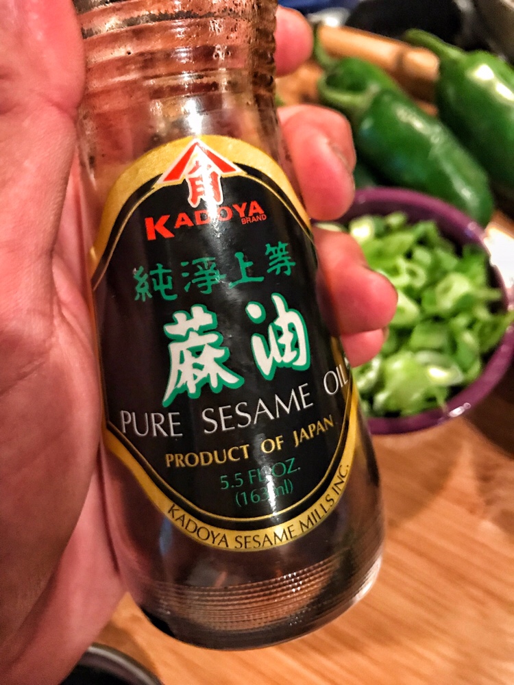 - Sprinkle a bit of sesame oil over the top of the tuna and veggies and give it another sprinkle of sesame seeds.