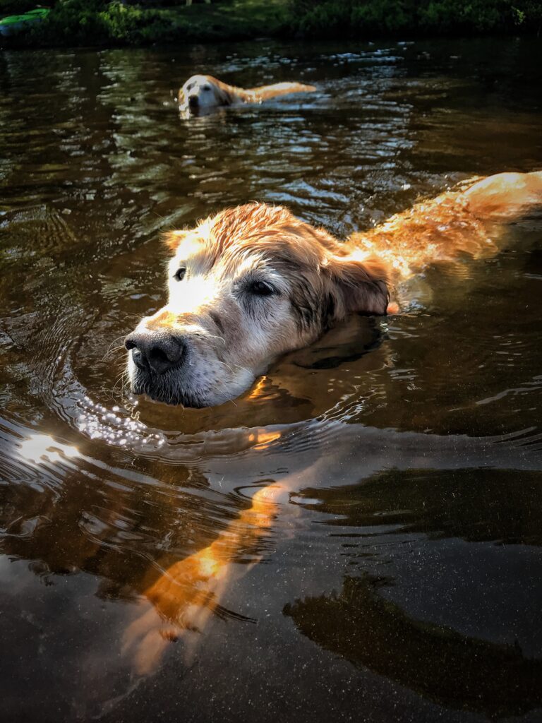 Summer is also one of the most special times for the most important people in our family, the dogs. We are a dog family of four. Original Tipsy has two labs. I have an older golden retriever and a rescue dog named Gus who looks a lot more like a pot bellied pig than a dog. I believe the dogs enjoy the lake even more than we do. They enjoy swimming, boating, lounging on the porches , long walks through the woods and rides on the mule.