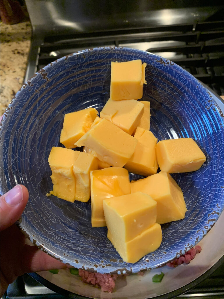 - 1 C of Velveeta Cheese, Cubed (maybe a little more if you like it cheesy)