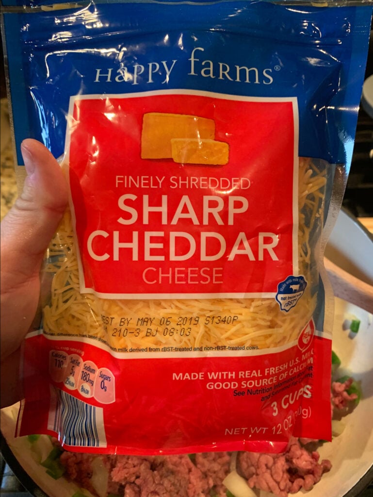 - 2 C of Shredded Sharp Cheddar Cheese