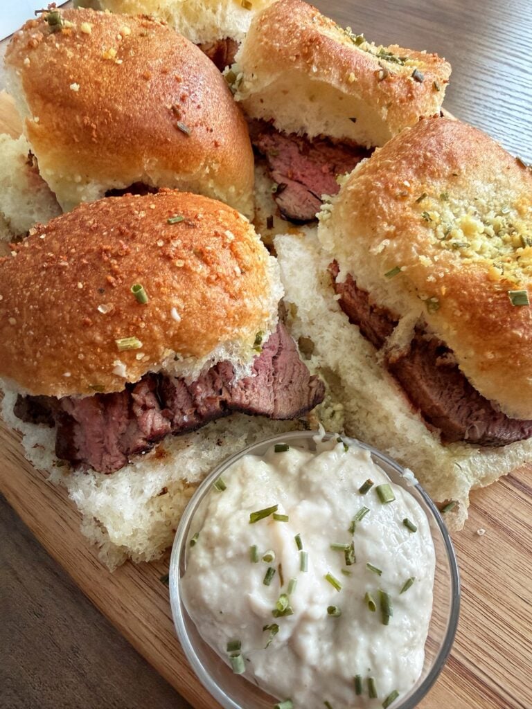 Filet Mignon Sliders on Garlic Parmesan Rolls