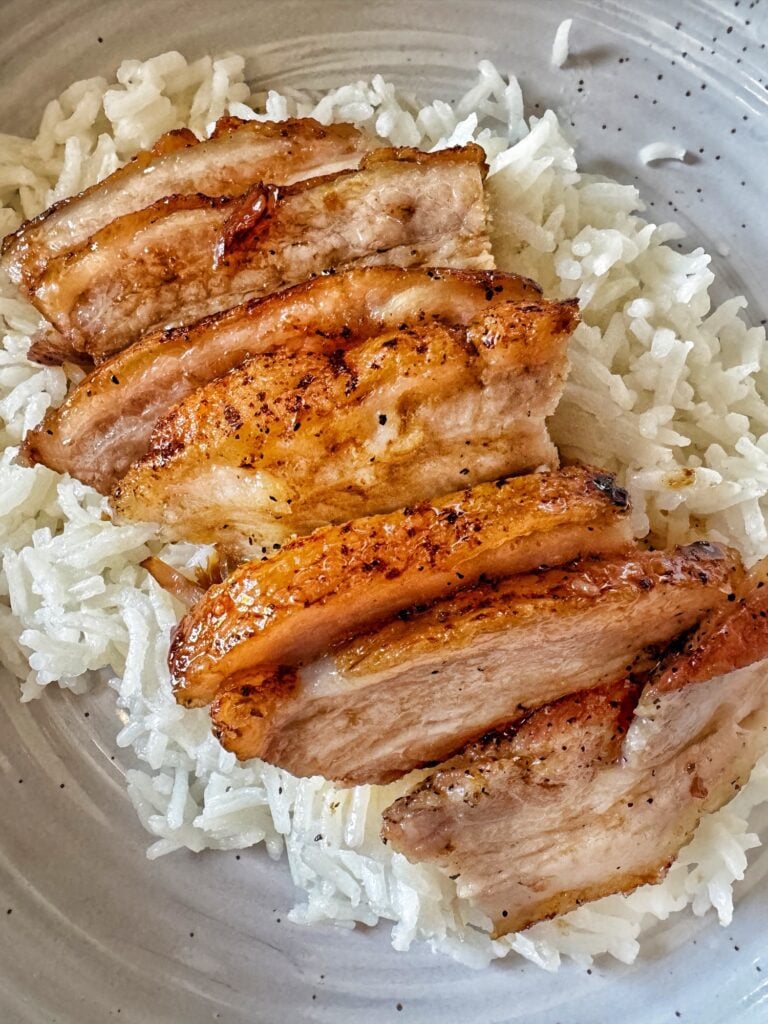 I was craving something rich and savory to spoon over a bowl of rice and pork belly felt like the perfect choice. This is also great sliced and tucked into little seaweed wrappers like a handheld rice bowl.
