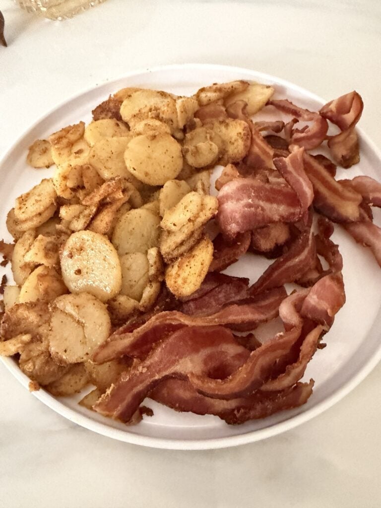 I was thinking about a simple Lenten supper when I remembered the most delicious breakfast tacos I once had at a little breakfast spot in Florida. They were loaded with crispy fried potatoes and chorizo, but today I used bacon instead. You can easily omit the meat altogether for Lent. These make a hearty, seasoned breakfast taco perfect for brunch or a cozy meatless supper.