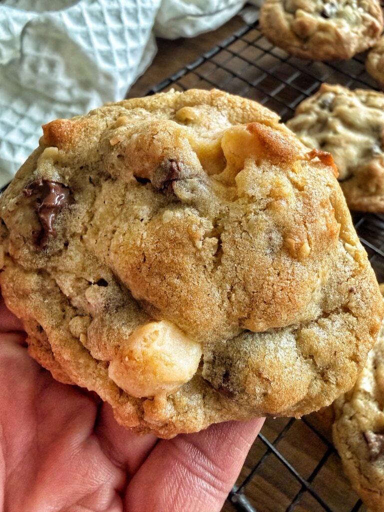 A thick, chewy bakery-style cookie loaded with toasted coconut, buttery macadamia nuts, and melty chocolate chunks. Crisp edges with a soft center just like the famous Nordstrom cookies.