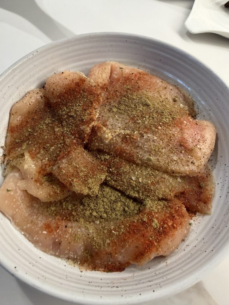 - *when seasoning just be sure every breast has a light dusting of the seasonings on both sides