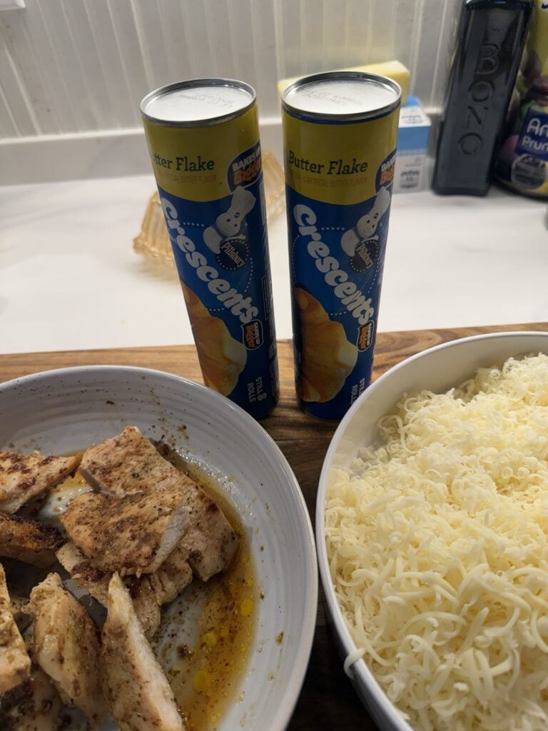 I had a craving for something that felt a little 1980s fancy. Just like those recipes that used to seem so gourmet but came from those thin little grocery checkout cookbooks I still love collecting. I wanted chicken, something green, a creamy sauce, and of course crescent rolls. I tested this out and it turned out absolutely delicious.