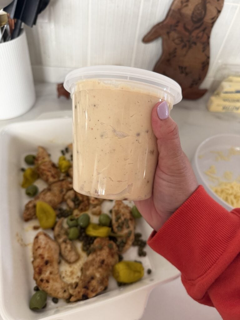 Any kind of peppers or olives would also be a great addition here. This is a really fun recipe to play around with. Roasted red peppers, cherry peppers, banana peppers, or a mix of olives like kalamata or green olives. These all bring a little extra briny, tangy flavor that works perfectly with the cheese sauce and chicken. Feel free to get creative and use whatever you love or have on hand to make it your own.