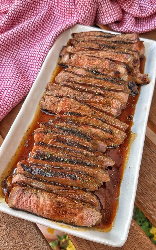 Sweet and savory cherry cola marinated steaks are grilled to perfection and finished with a rich, glossy brown sugar glaze made from prune juice. It’s a bold, slightly unexpected combination that delivers deep flavor with just the right balance of tangy, salty, and sweet.