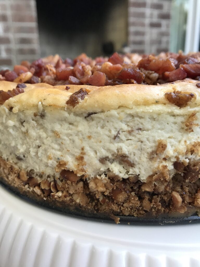 I was given a bottle of wine to try called Gewürztraminer from a wonderful company called Kascadia Wine Merchants from Canada. After sharing with them what I liked in wine, they recommended this variety to send to me. They described this wine as being very versatile and that it paired well with a variety of cheeses and cuisines. This particular wine is produced by world renowned, Meyer Family Vineyards. In July 2017, Meyer Family Vineyards was awarded the distinction of being the #2 best Small Winery in Canada, and #12 winery overall at the prestigious Wine Alignés National Wine Awards of Canada (NWAC). Meyers has their wines featured in prestigious magazines such as Decanter and The Globe and Mail often which has wine enthusiasts from all parts of the world scrambling to visit their winery in majestic Okanagan Valley. I loved it! After tasting it, I knew EXACTLY the dish I wanted to prepare to enjoy with the wine. I came up with this Bleu Cheese Bacon Savory Cheesecake. Do not let the complexity of this recipe scare you, it is A LOT easier to make than you think. Here is what you need: