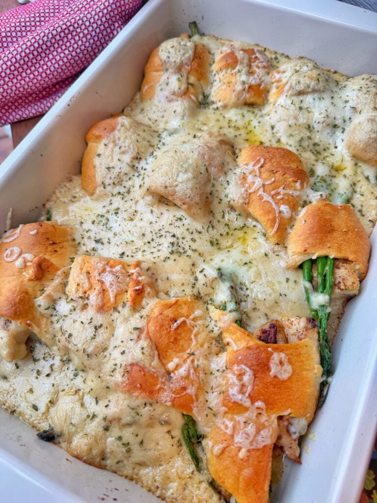 Bring Back The Eighties This is one of those cozy, crowd-pleasing dinners that looks a lot fancier than it actually is. This Chicken Asparagus Croissant Bake has buttery crescent rolls, seasoned chicken, and asparagus get baked together. It is finished with a creamy cheese sauce that makes the whole dish feel indulgent without a ton of work. I had a craving for something that felt a little 1980s fancy. Just like those recipes that used to seem so gourmet but came from those thin little grocery checkout cookbooks I still love collecting. I wanted chicken, something green, a creamy sauce,…