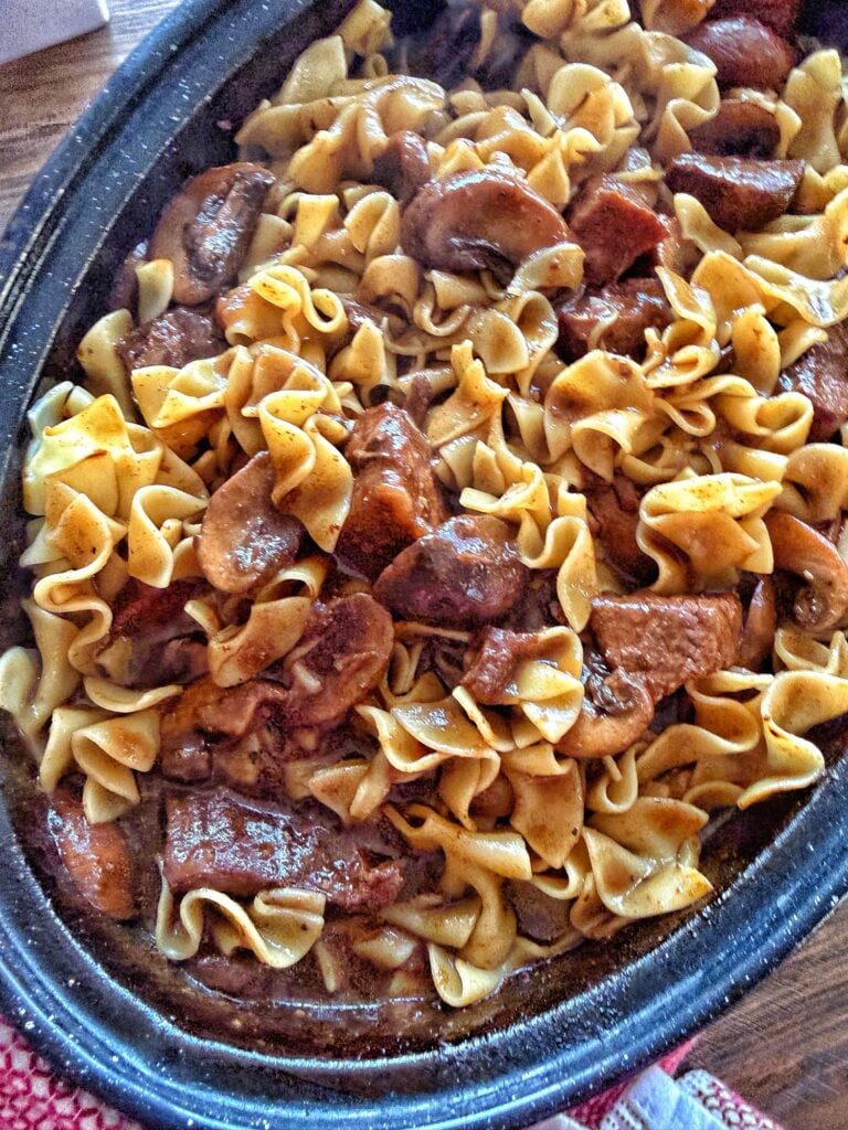 Classic Comfort Food With Steakhouse Vibes There’s something about a big pan of beef stroganoff that just feels like olden times. Tender beef, buttery mushrooms and onions. This is all in a rich savory gravy. All of this comes together with egg noodles for a meal that’s simple and comforting. Mr. Tipsy has always been an egg noodle guy. Honestly, any pasta will make him happy if I am being honest. But there is something about egg noodles with a rich gravy and tender beef that he absolutely loves. It reminds him of the baked noodles his mom used to…